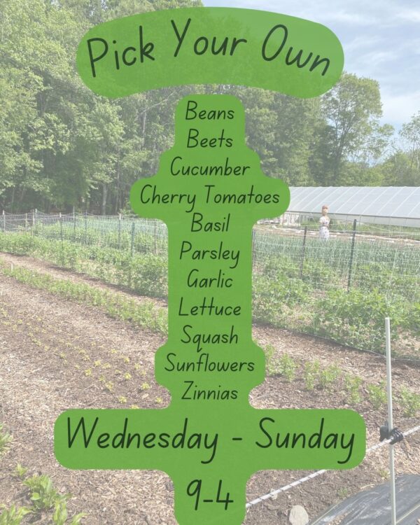 Due to increased resources and staff time, PYO produce and flowers will cost $1 more per unit than farmstand prices. All prices will be posted down at the fields and at the farmstand.